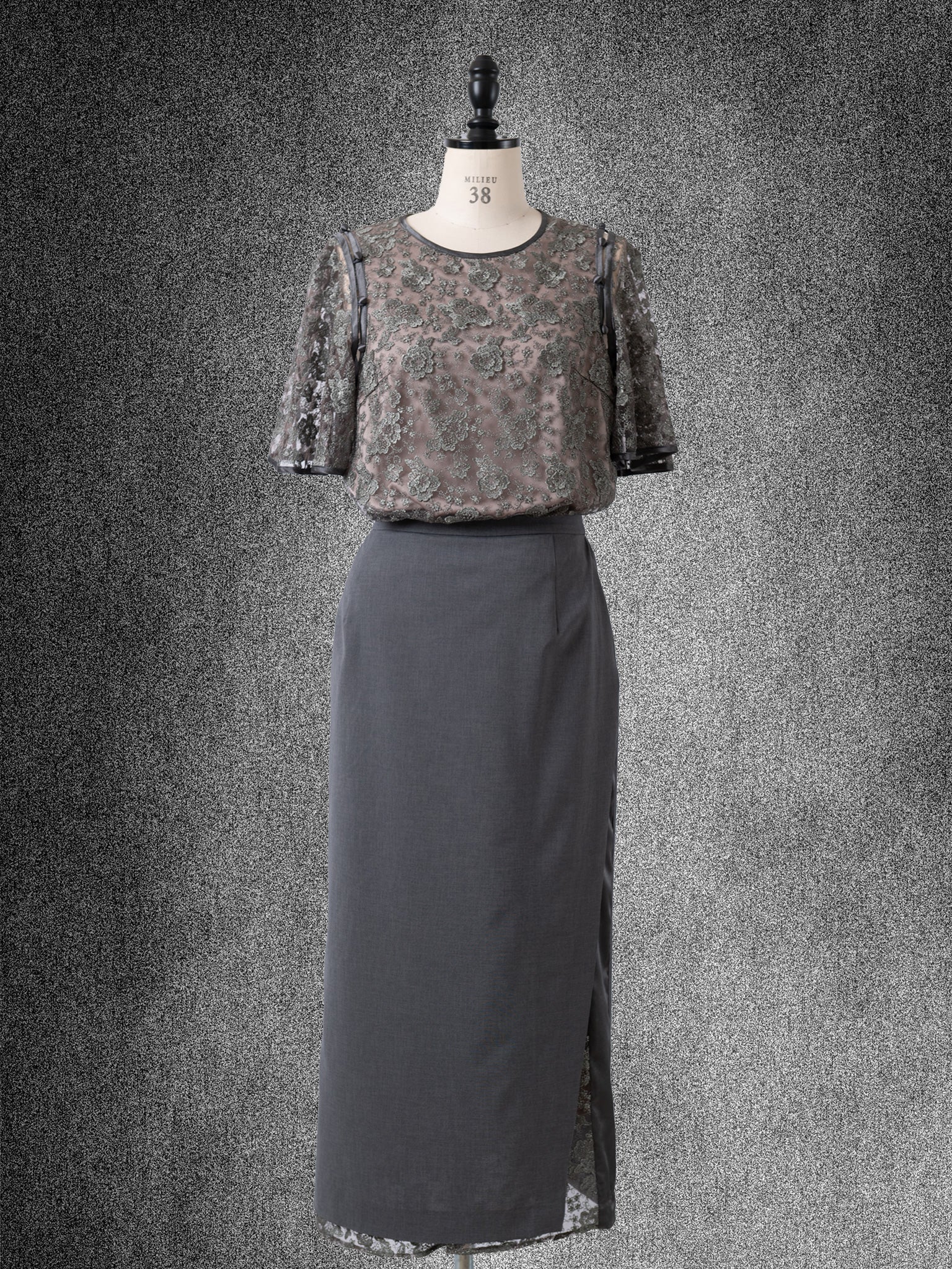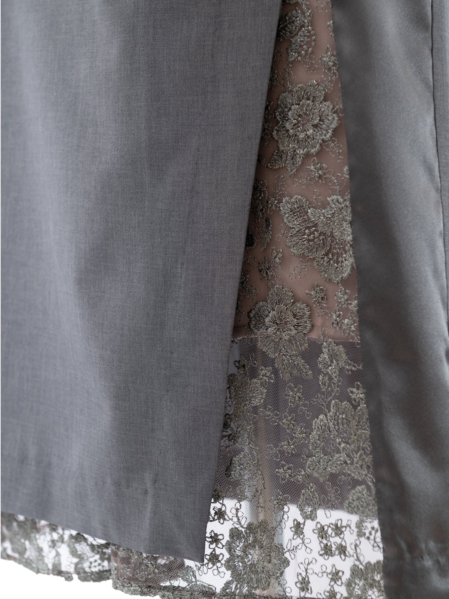 ラップ下のスカートをレース仕様にした、贅沢なデザイン。